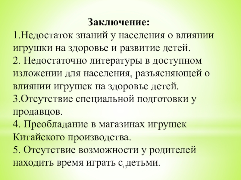1.Недостаток знаний у населения о влиянии игрушки на здоровье и развитие
