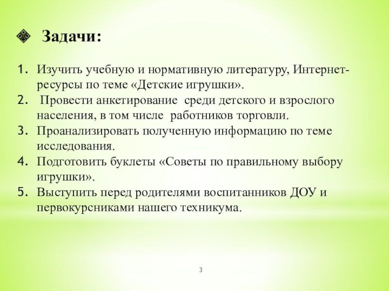 Изучить учебную и нормативную литературу, Интернет-ресурсы по теме «Детские игрушки».