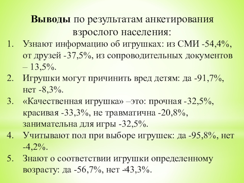 Слайд 12Выводы по результатам анкетирования взрослого населения: