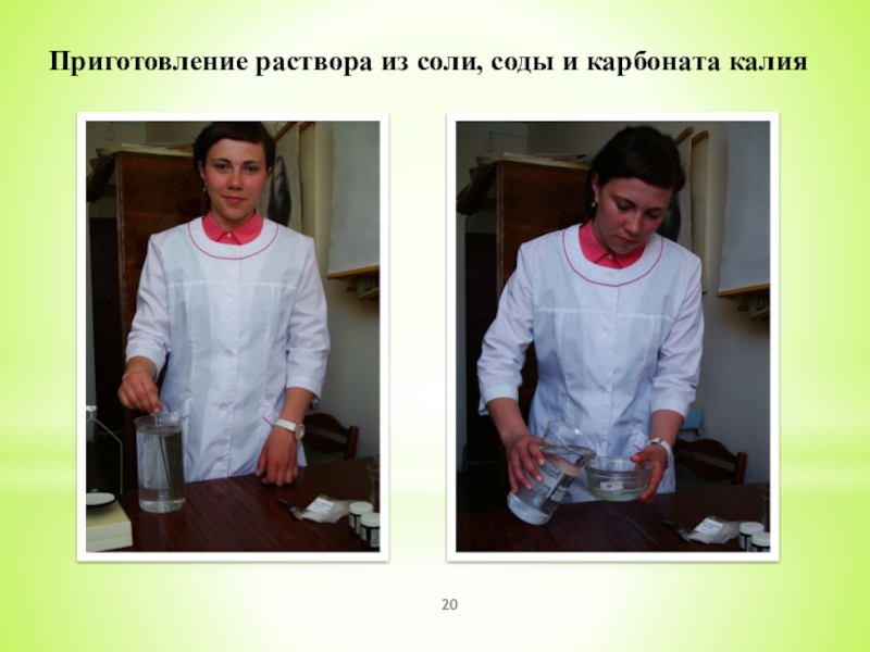 Слайд 20Приготовление раствора из соли, соды и карбоната калия