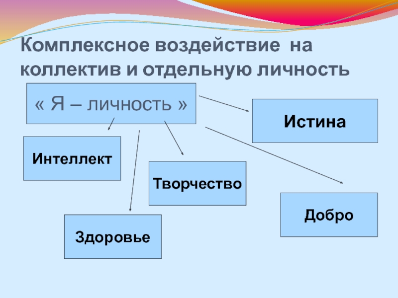 Слайд 8Комплексное воздействие на коллектив и отдельную личность