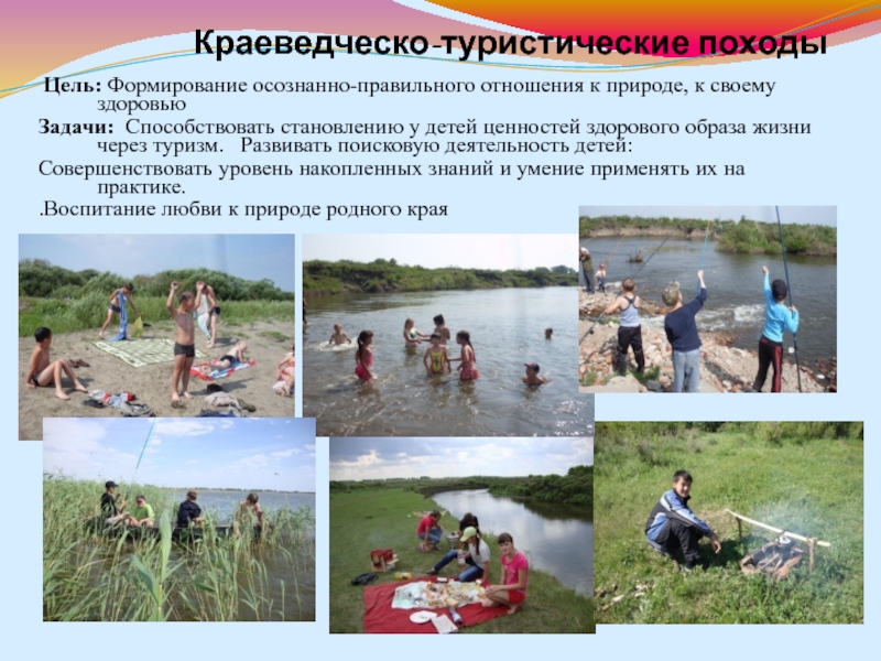 Задачи: Способствовать становлению у детей ценностей здорового образа жизни через туризм. Развивать поисковую деятельность детей: