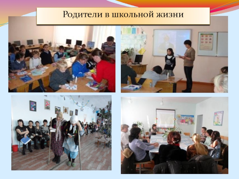 Проводят День открытых дверей, праздник Песни, экскурсии, походы, презентации предметов истории, географии, химии, математики и др., выставки прикладного творчества, рисунков; помогают младшим школьникам в проведении игр; знакомятся с жизнью разных людей на уроках, классных часах, создают альбомы, "раскладушки" о мастерах; заботятся о пополнении фонда библиотеки через акцию "Подари книгу школе".