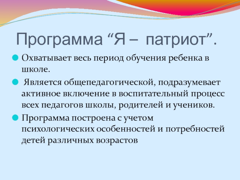 Программа построена с учетом психологических особенностей и потребностей детей различных возрастов
