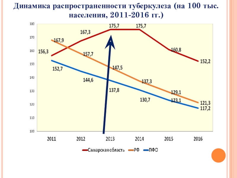 Пик заболеваемости туберкулезом всего населения в Самарской области – 2013 год: заболеваемость 95,6 на 100 тыс. населения, заболело туберкулезом на территории региона 3 072 человек.