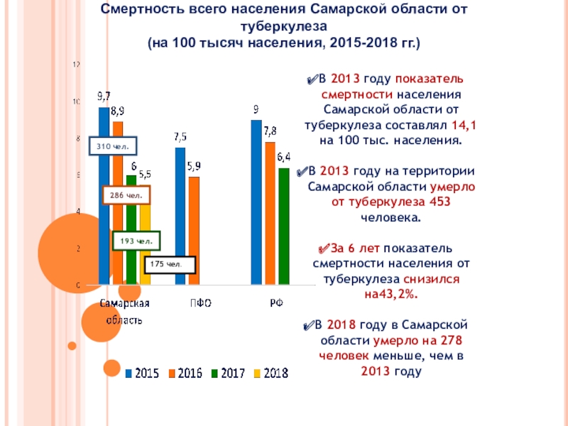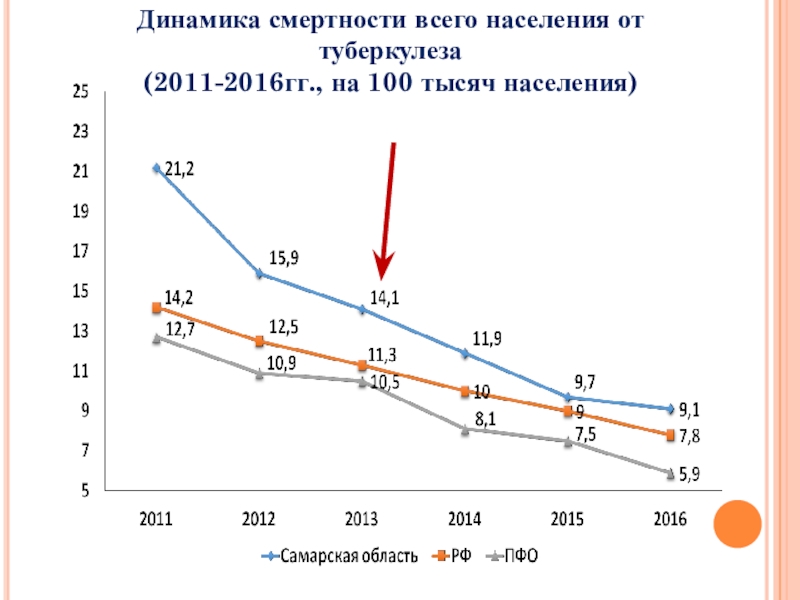 В 2013 году показатель смертности населения Самарской области от туберкулеза составлял 14,1 на 100 тыс. населения.