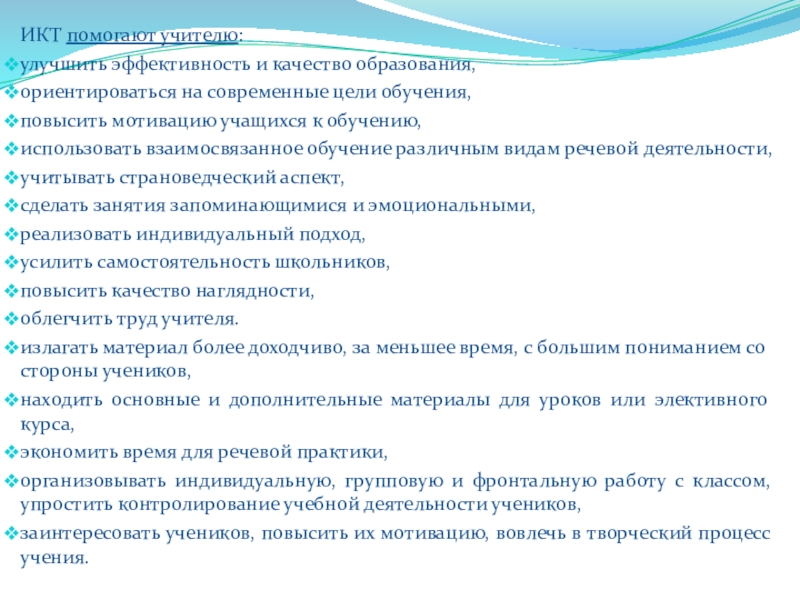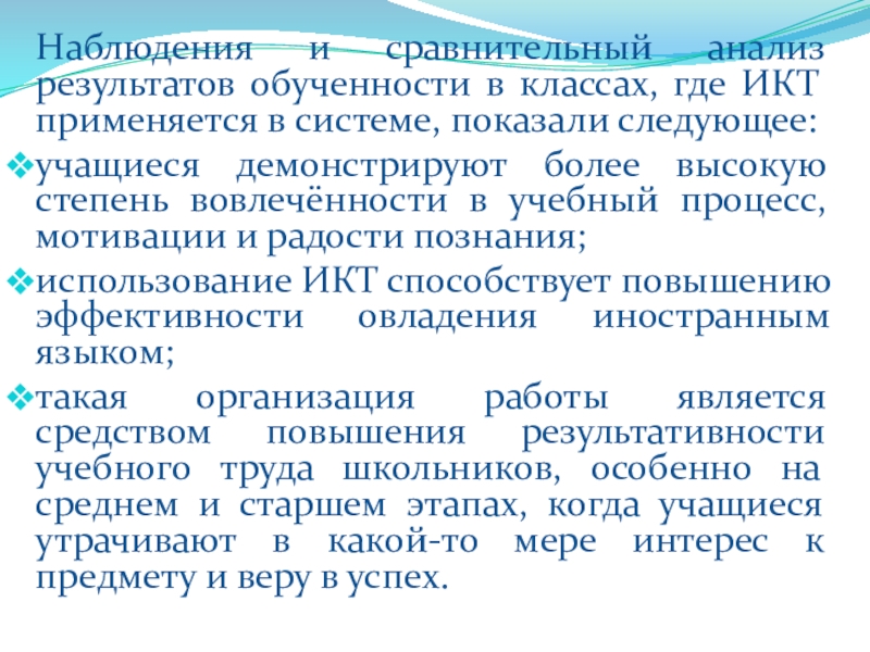 использование ИКТ способствует повышению эффективности овладения иностранным языком;