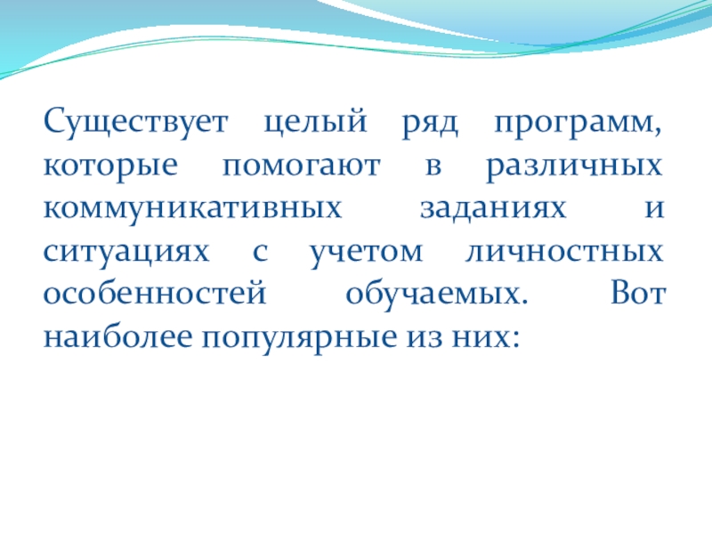 Слайд 23Существует целый ряд программ, которые помогают в различных коммуникативных заданиях и