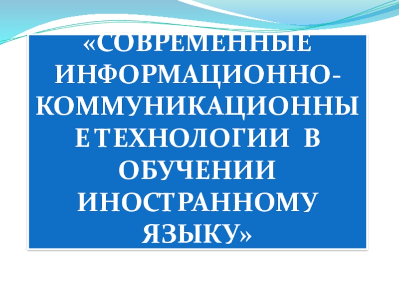 Слайд 1«СОВРЕМЕННЫЕ ИНФОРМАЦИОННО-КОММУНИКАЦИОННЫЕ ТЕХНОЛОГИИ В ОБУЧЕНИИ ИНОСТРАННОМУ ЯЗЫКУ»