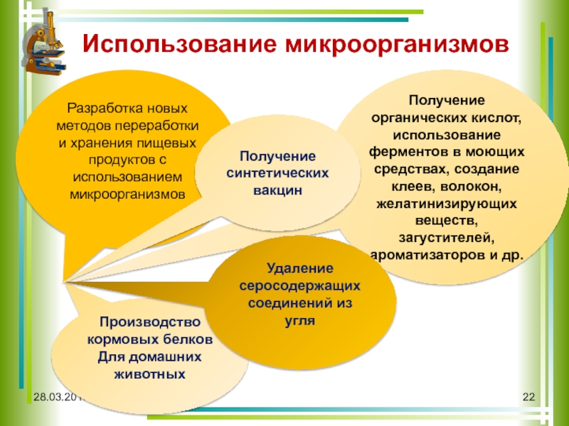 Получение органических кислот, использование ферментов в моющих средствах, создание клеев, волокон, желатинизирующих веществ, загустителей, ароматизаторов и др.
