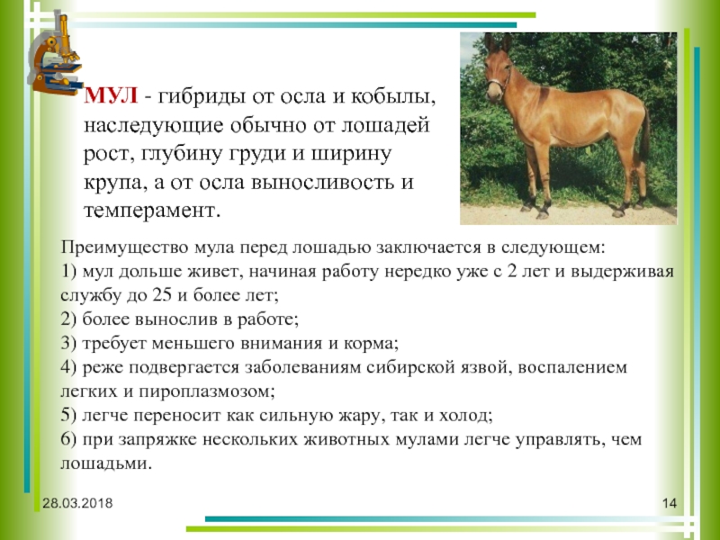 1) мул дольше живет, начиная работу нередко уже с 2 лет и выдерживая службу до 25 и более лет;