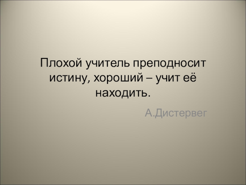 Слайд 3Плохой учитель преподносит истину, хороший – учит её находить.