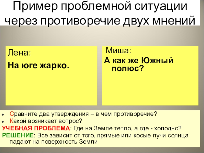 Слайд 58Пример проблемной ситуации через противоречие двух мнений