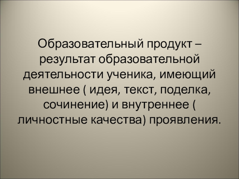 Слайд 71Образовательный продукт – результат образовательной деятельности ученика, имеющий внешнее (