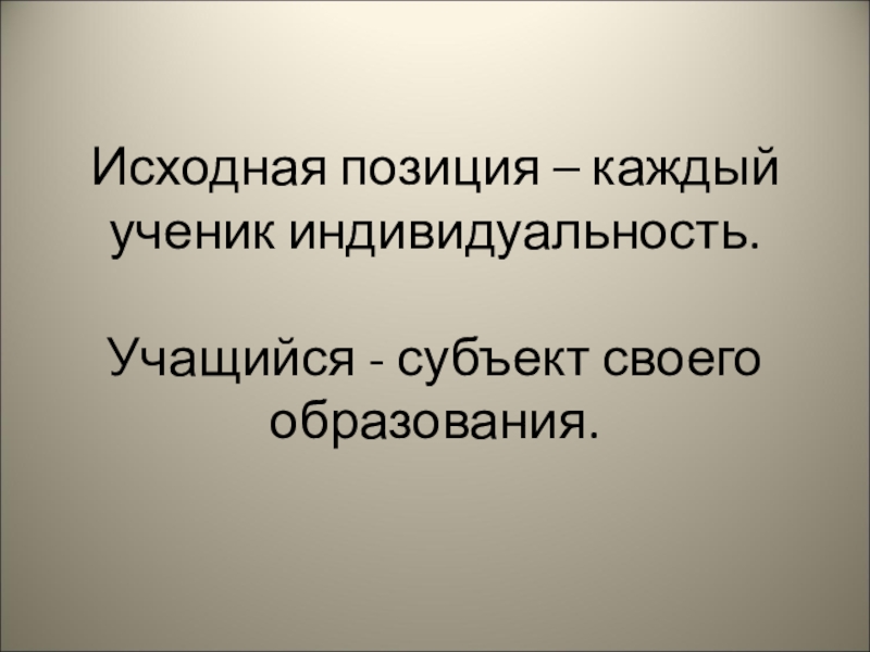 Слайд 67Исходная позиция – каждый ученик индивидуальность.