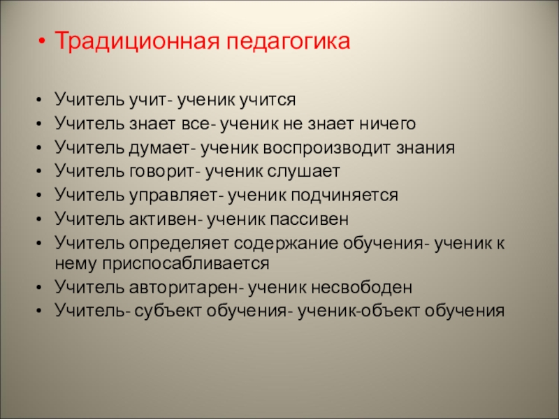 Учитель определяет содержание обучения- ученик к нему приспосабливается