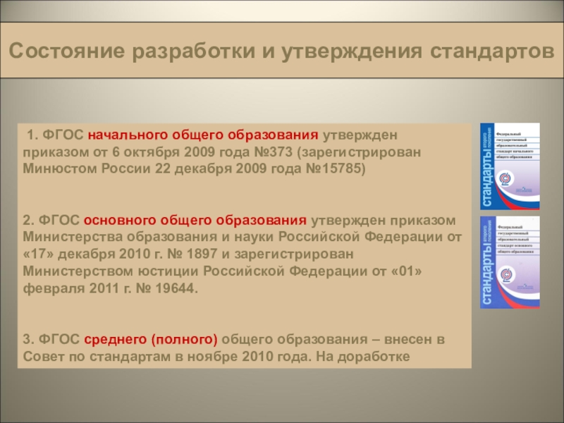 3. ФГОС среднего (полного) общего образования – внесен в Совет по стандартам в ноябре 2010 года. На доработке