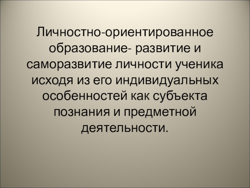 Слайд 73Личностно-ориентированное образование- развитие и саморазвитие личности ученика исходя из его индивидуальных