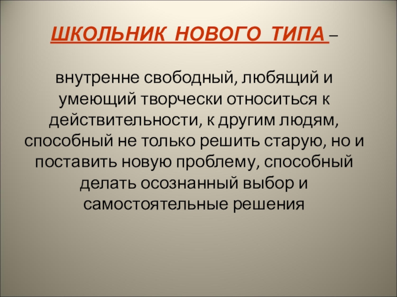 к действительности, к другим людям, способный не только решить старую, но и поставить новую проблему, способный делать осознанный выбор и самостоятельные решения