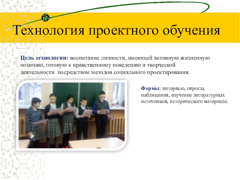 Формы: интервью, опросы, наблюдения, изучение литературных источников, исторического материала.