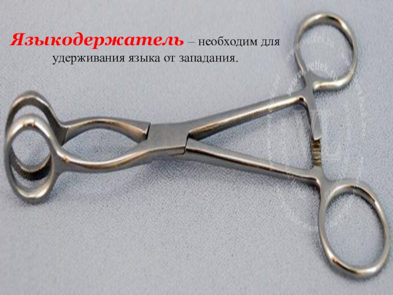 Слайд 15Языкодержатель – необходим для удерживания языка от западания.