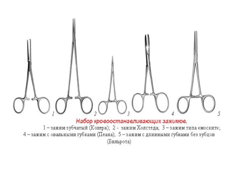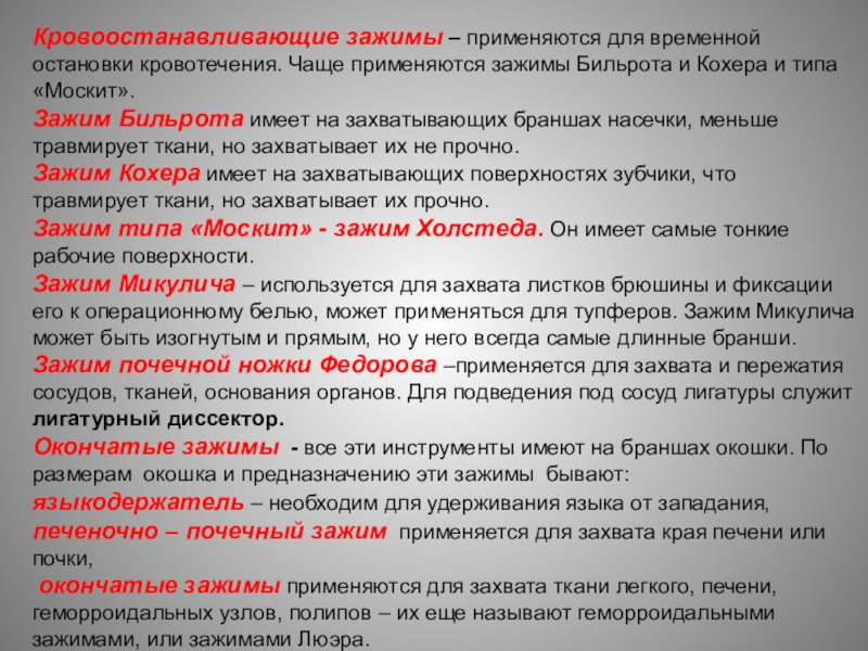 Слайд 11Кровоостанавливающие зажимы – применяются для временной остановки кровотечения. Чаще применяются зажимы