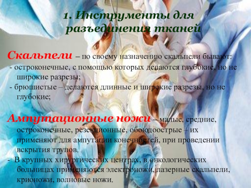 Слайд 21. Инструменты для разъединения тканей
