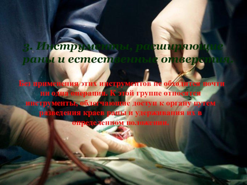 обходится почти ни одна операция. К этой группе относятся инструменты, облегчающие доступ к органу путем разведения краев раны и удерживания их в определенном положении.