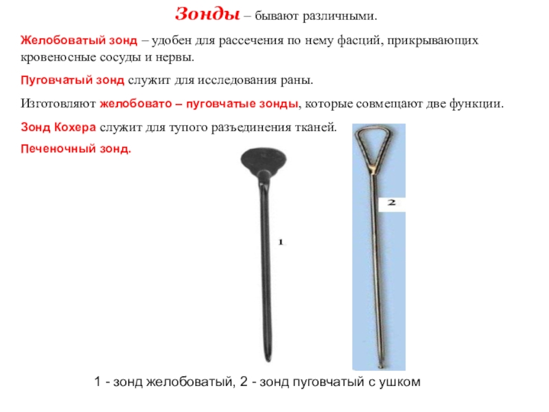 1 - зонд желобоватый, 2 - зонд пуговчатый с ушком