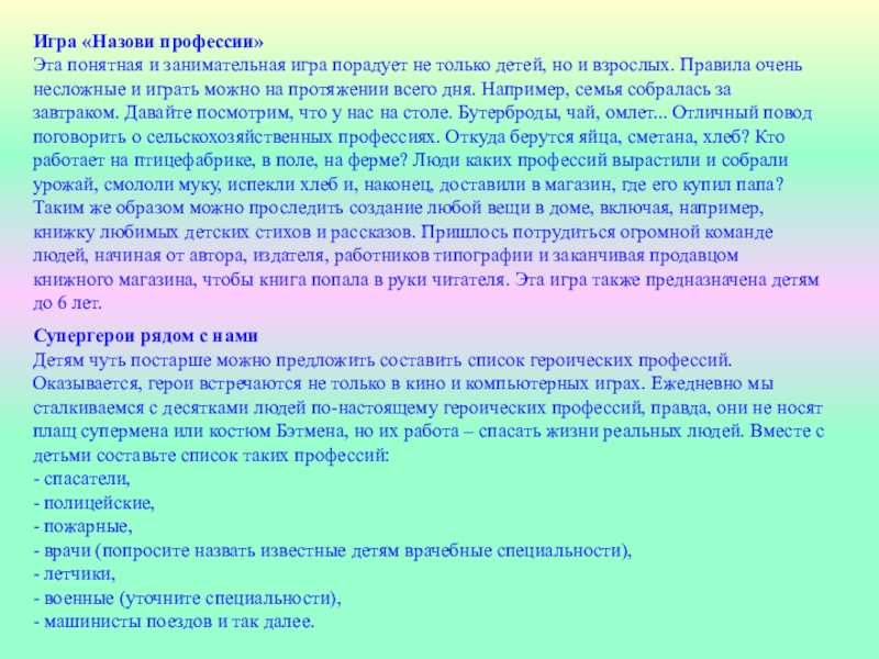 Детям чуть постарше можно предложить составить список героических профессий. Оказывается, герои встречаются не только в кино и компьютерных играх. Ежедневно мы сталкиваемся с десятками людей по-настоящему героических профессий, правда, они не носят плащ супермена или костюм Бэтмена, но их работа – спасать жизни реальных людей. Вместе с детьми составьте список таких профессий: