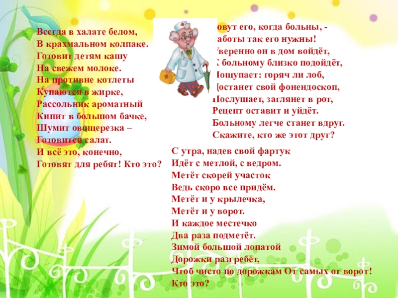 Чтоб чисто по дорожкам От самых от ворот! Кто это?
