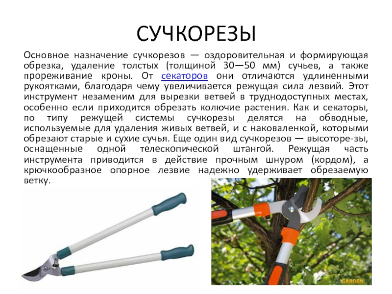 Основное назначение сучкорезов — оздоровительная и формирующая обрезка, удаление толстых (толщиной