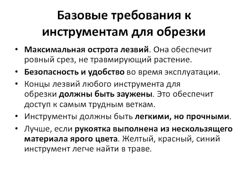 Концы лезвий любого инструмента для обрезки должны быть заужены. Это обеспечит доступ к самым трудным веткам.