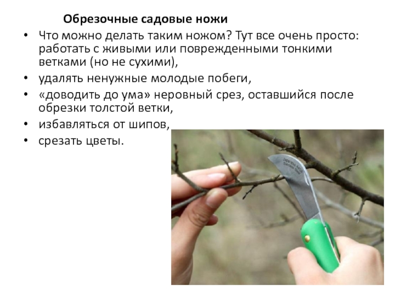 Садовые ножи нужны для более «деликатных» работ: устранения неровностей среза,