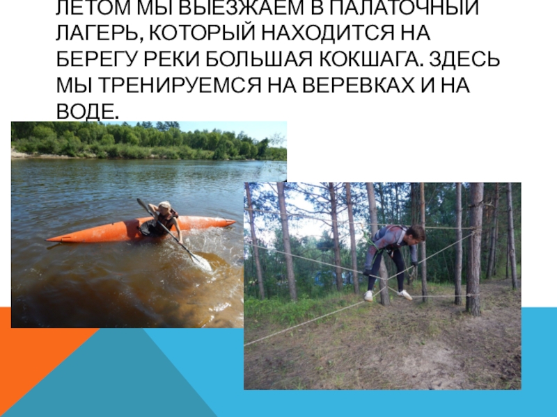Слайд 7Летом мы выезжаем в палаточный лагерь, который находится на берегу реки