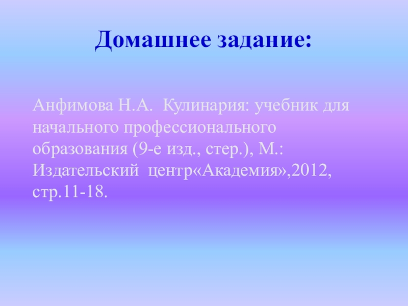 Анфимова Н.А. Кулинария: учебник для начального профессионального образования (9-е изд.,
