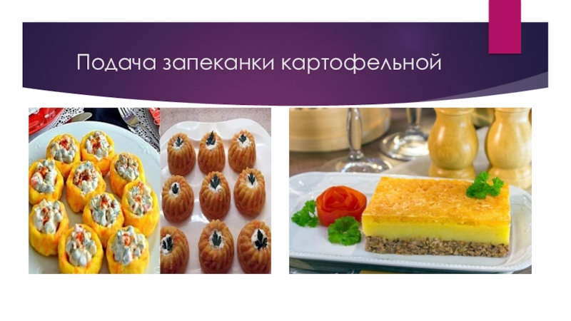 Слайд 1Современные способы подачи картофельного пюре запеченного