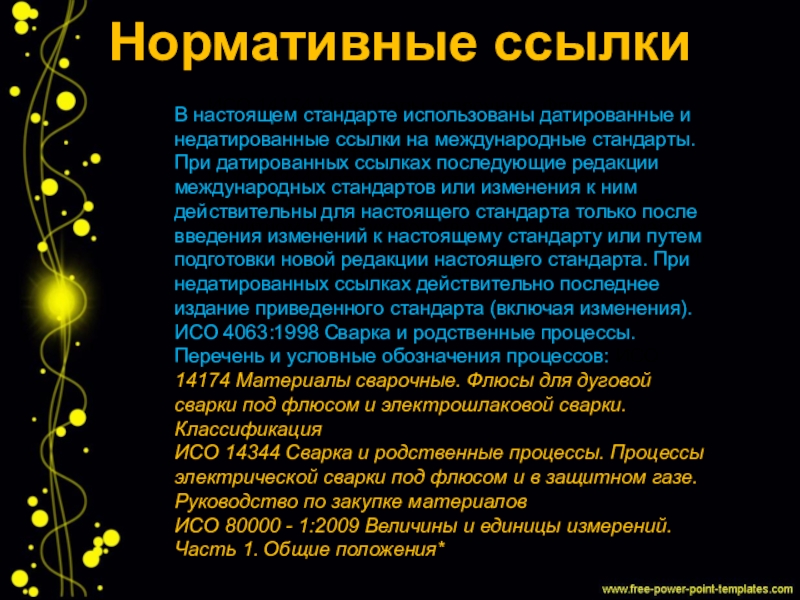 ИСО 4063:1998 Сварка и родственные процессы. Перечень и условные обозначения процессов: ИСО 14174 Материалы сварочные. Флюсы для дуговой сварки под флюсом и электрошлаковой сварки. Классификация