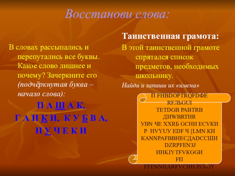 В этой таинственной грамоте спрятался список предметов, необходимых школьнику.