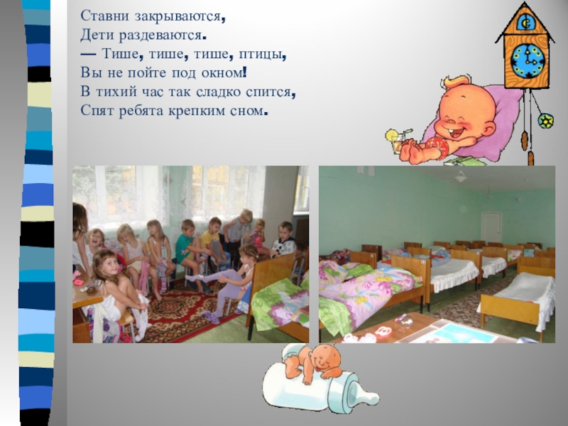 Слайд 10Ставни закрываются, Дети раздеваются. — Тише, тише, тише, птицы, Вы не пойте под окном! В
