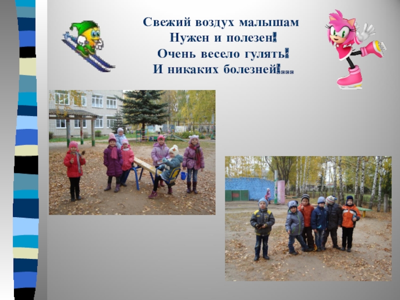 Свежий воздух малышам  Нужен и полезен!  Очень весело гулять!  И никаких болезней!...