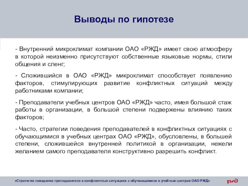 «Стратегии поведения преподавателя в конфликтных ситуациях с обучающимися в учебных центрах ОАО РЖД»