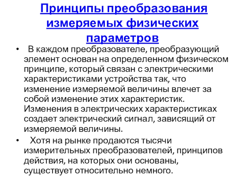 Слайд 4 Принципы преобразования измеряемых физических параметров