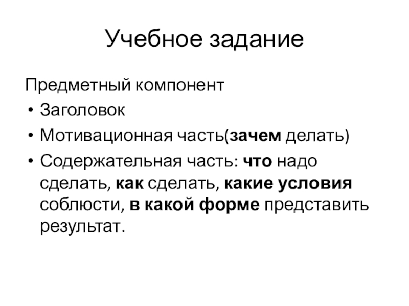 сделать, какие условия соблюсти, в какой форме представить результат.