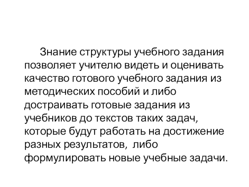 Слайд 5 Знание структуры учебного задания позволяет учителю видеть и оценивать качество готового