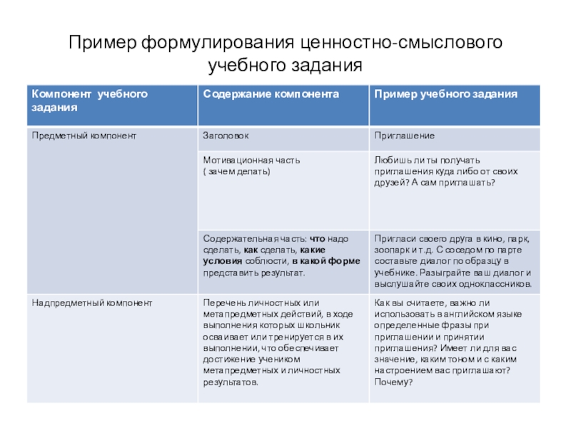 Слайд 4Пример формулирования ценностно-смыслового учебного задания