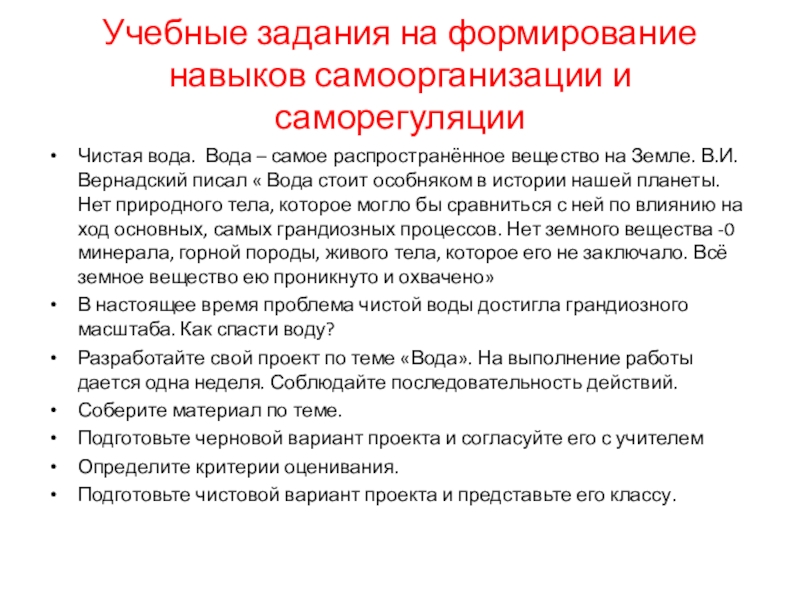 Слайд 10Учебные задания на формирование навыков самоорганизации и саморегуляции
