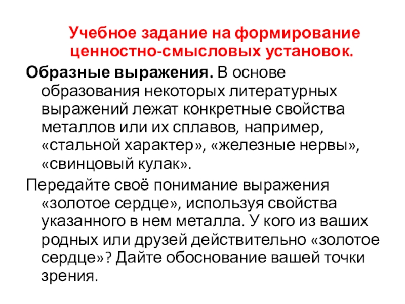 Слайд 6 Учебное задание на формирование ценностно-смысловых установок.