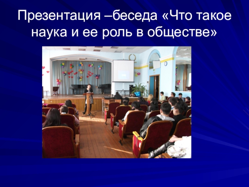 Слайд 9Презентация –беседа «Что такое наука и ее роль в обществе»