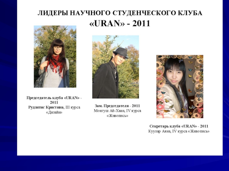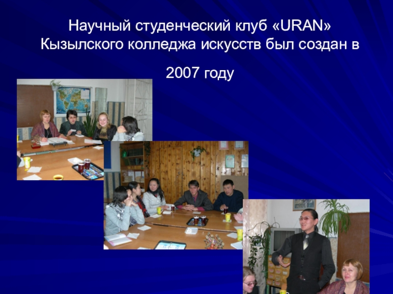 Слайд 2Научный студенческий клуб «URAN» Кызылского колледжа искусств был создан в 2007
